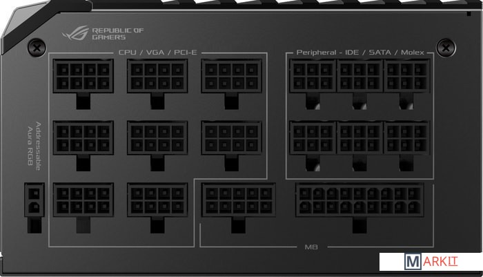 Подсветка Aura: встроенные адресуемые цветные светодиоды и технология Aura Sync для синхронизации визуальных эффектов с другими устройствами.OLED-дисплей: отслеживание энергопотребления в режиме реального времени.Эффективное охлаждение: пыленепроницаемый (IP5X) вентилятор Wing-blade с поддержкой бесшумного режима работы и радиатор ROG.