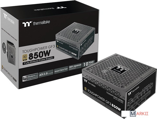 Вся линейка блоков питания серии Toughpower GF3 соответствует уровню эффективности 80 PLUS Gold. Предназначенный для обеспечения наилучшей производительности, блок питания Toughpower GF3 850W включает все важнейшие характеристики, такие как минимальный уровень пульсационного шума < 30 мВ, чрезвычайно точная регуляция напряжения < ±2% и время удержания 17 миллисекунд. Используя исключительно высококачественные японские конденсаторы 105 °C, серия GF3 отличается исключительной выносливостью и устойчивостью, даже на предельном уровне нагрузки.Полная совместимость со спецификациями Intel PSDG ATX 3.0Серия Toughpower GF3 полностью совместима со спецификациями Intel ATX 3.0, что позволяет выдерживать скачок мощности до 200% и достигать эффективности до 70% при низкой нагрузке. Блоки питания GF3 кратковременно могут выдерживать 3-х кратное превышения мощности по линии питания GPU и 2-кратное по всем остальным линиям.Серия GF3 разработана для графических адаптеров NVIDIA и AMD, с любым интерфейсом дополнительного питания.Toughpower GF3 850W Gold оснащен 16-контактным разъемом 12VHPWR, обеспечивающий мощное и стабильное питание вашей видеокарте нового поколения.Благодаря технологии Smart Zero Fan, вентилятор не будет вращаться, пока нагрузка не превысит 30% от мощности блока питания.Во всем диапазоне нагрузки уровень пульсационного шума на линиях 12В, 5В и 3,3В, составляет менее 30 мВ, что положительно скажется на жизненном цикле всех комплектующих компьютера.Максимальный уровень отклонения составляет ±2% на всех выходных линиях, что намного превосходит спецификации Intel, которые соответствуют +5%, -7% для основных линий и ±10% для линии -12В.Блок питания имеет полностью модульную структуру подключения кабелей. Это позволяет подключить только те кабели, которые вам нужны, минимизируя при этом их кол-во, что положительно сказывается на качестве продуваемости внутри корпуса. Все кабели имеют плоскую форму, что упрощает их укладку внутри корпуса.В блоках питания серии GF3 используются конденсаторы исключительно японского производства, что гарантирует долгую и надежную работу в течение длительного времени без протечки электролита.Блок питания имеют одну мощную линию +12В, которая обеспечивает надежное и стабильное выходное напряжения для всех компонентов компьютера. Высочайшая стабильность и точная регуляция выходных напряжений достигается благодаря использованию передовых резонансных и DC-DC преобразователей.