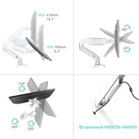 | Функциональные особенности | поворотный, с регулировкой высоты, кабель-канал, струбцинное крепление |