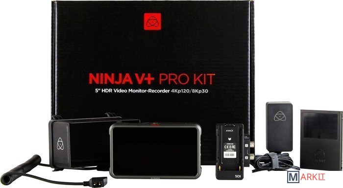 Ninja V+ Pro Kit был разработан, чтобы преодолеть разрыв между компактными кино и беззеркальными камерами, которые могут выводить RAW через HDMI или SDI. Обладая всей мощью Ninja V + для записи 8Kp30 по HDMI, Pro Kit также добавляет возможность записи форматов 4Kp120 и 2Kp240 по подключению SDI.Ninja V+ использует преимущества нового чипа Atomos Silicon AtomIC3, операционной системы AtomOS 10 и невероятную эффективность формата компрессии ProRes RAW для записи сигнала в сверхвысоком разрешении и с повышенной частотой кадров. Новые форматы также легко интегрируются в ваши существующие проекты ProRes RAW или ProRes без дополнительных расходов на хранение материала или его преобразование.Ninja V+ Pro Kit поставляется в комплекте с аксессуарами для камеры и даете возможность записи в формате 4Kp120 ProRes RAW с видеовыхода SDI RAW на Sony, FX9* и FX6. Пользователи как Atomos, так и Sony теперь смогут ощутить преимущества работы с видео высокого разрешения с невероятными 120 fps, упакованными в формат ProRes RAW.В сочетании с модулем AtomX SDI и серьезной настройкой Pro Kit обеспечивает возможность записи RAW через SDI с одних из лучших компактных кинокамер на рынке. Нет RAW? Нет проблем. Ninja V+ Pro Kit - это гибкий инструмент, который может работать как монитор-рекордер HDMI/SDI в формате ProRes. Pro Kit включает в себя 5-дюймовый солнцезащитный козырек AtomX, обеспечивающий расширенные возможности мониторинга на открытом воздухе и при ярком дневном свете. Прочный алюминиевый корпус 5″ монитора-рекордера позволяет владельцам и операторам камер создавать компактные сетапы для работы с новейшими камерами. Бандл идеально подходит для записи документального кино и для съемок крупным планом, которые требуют гибкости или мобильности оператора.