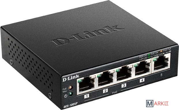 Markit » Коммутаторы » Неуправляемый коммутатор D-Link DES-1005P/B1A