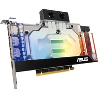 ASUS и EK представляют видеокарту ASUS EKWB GeForce RTX 3090 – результат совместной работы инженеров обеих компаний. Металлическая усилительная пластина и стальная монтажная планка вкупе с автоматизированным производственным процессом (технология Auto-Extreme) создают надежную основу для полноразмерного ватерблока EK. Все устройство умещается в форм-фактор всего лишь одного слота, предлагая преимущества водяного охлаждения владельцам миниатюрных компьютеров.